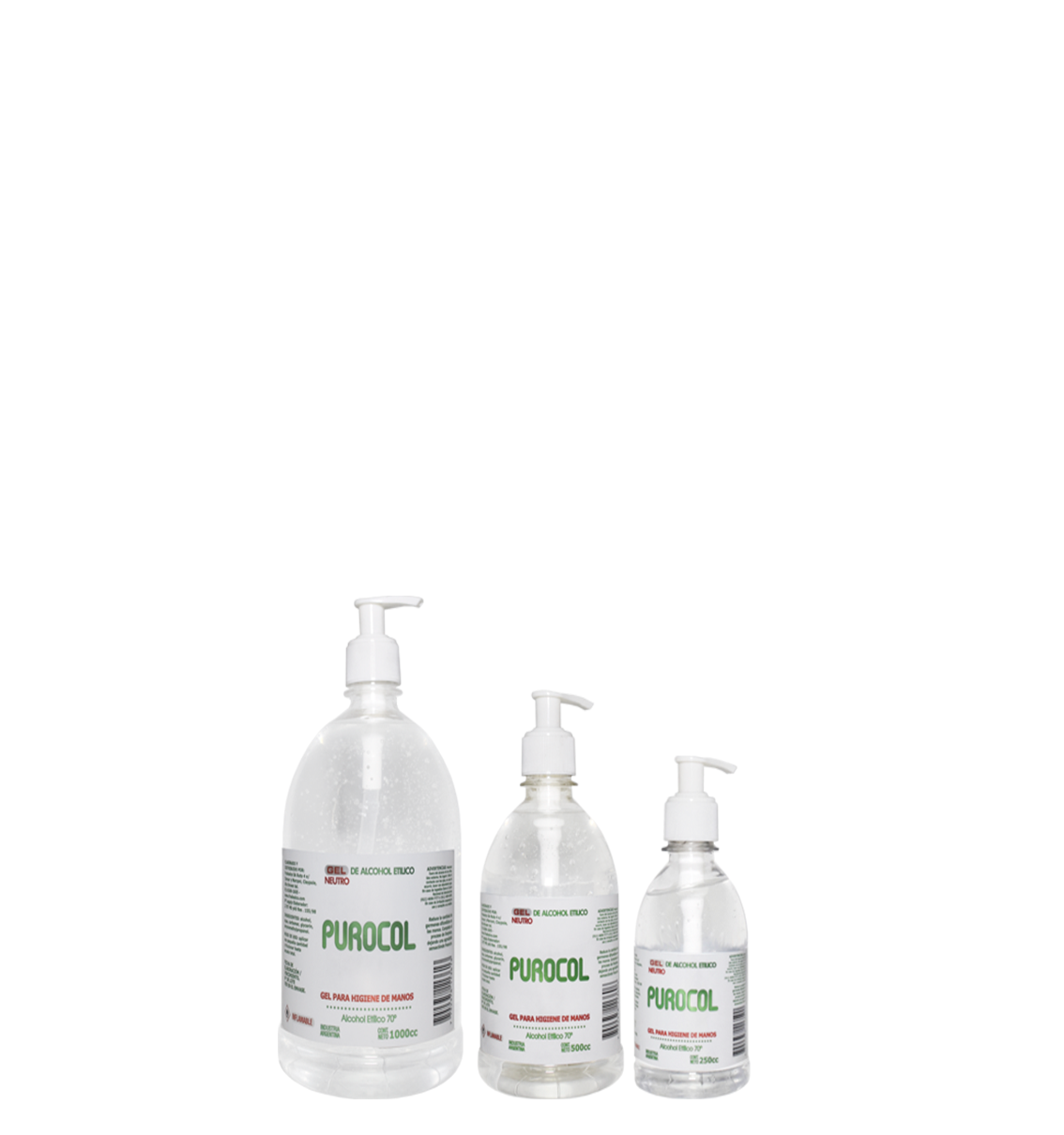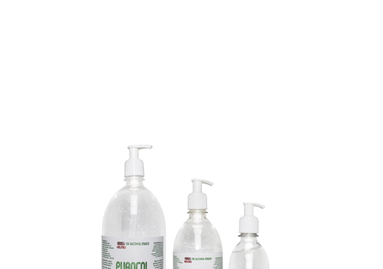 Purocol es alcohol etílico y sanitizantes. 250cc, 500cc, 1000cc.