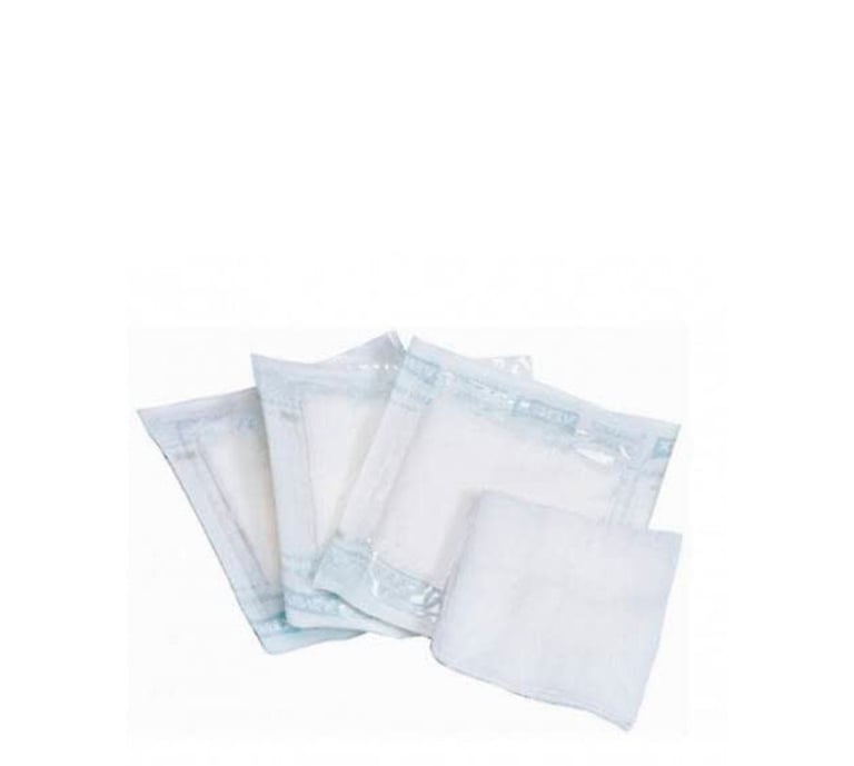 Gasas hidrófilas estériles de algodón, muy absorbentes, esterilizadas por vapor de agua y presentadas en sobres individuales codificados para garantizar higiene y seguridad.